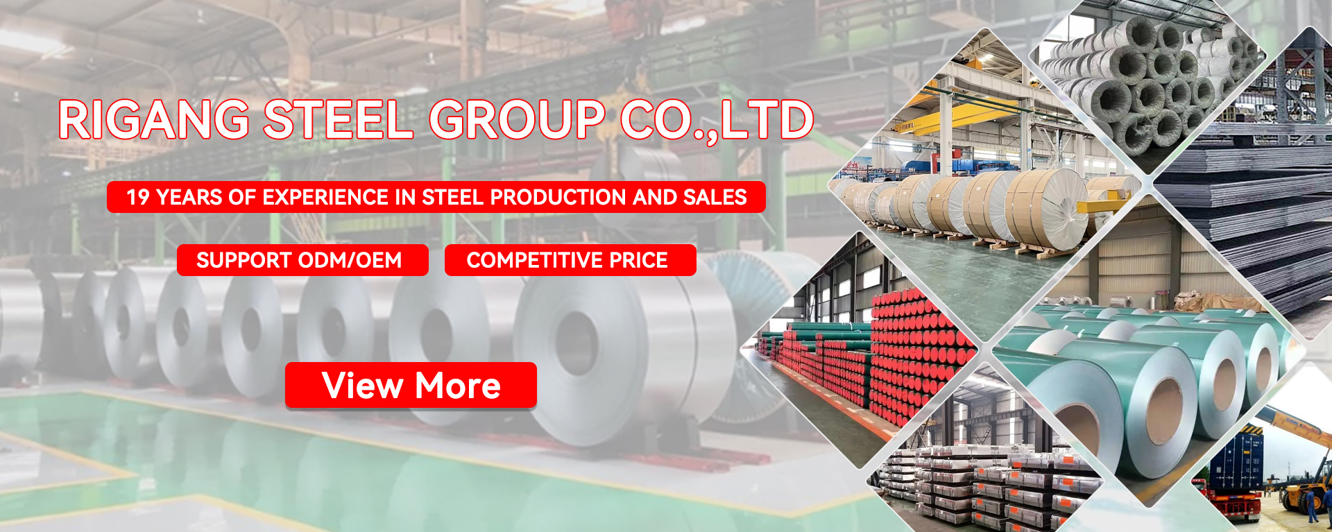 RIGANG STEEL GROUP CO.,LTD is a company integrating production, processing, sales and transportation. The main production of stainless steel, carbon steel, galvanized steel, PPGI, PPGL, steel sheet pile, rebar and so on. We have our own processing plant and inventory warehouse, can meet the customer's various customized services, such as leveling, slitting, straightening, galvanizing, color coating, pressing and so on. The company has passed ISO9001 quality system certification and CE certification. If you want to find a reliable manufacturer partner and guarantee the quality and service of your products, then we are the right choice!